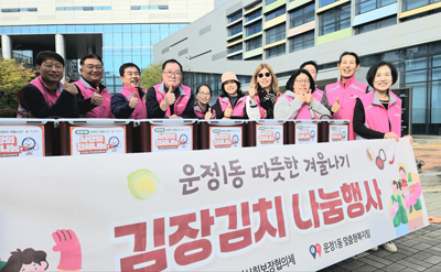 주재료인 배추와 무는 운정1동 새마을지도자협의회 회원들이 직접 재배한 것으로 준비됐다. 이날 단체 회원들이 직접 재료를 손질해 김장김치 100통(5㎏)을 담고, 홀몸 어르신 등 취약계층 100가구에 전달했다.