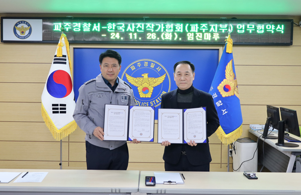 파주경찰서는 한국사진작가협회(지부장 지인규)26일 경찰서에서 쉼이 있는 편안한 환경 조성을 위한 업무협약을 체결했다.