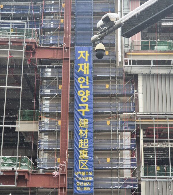당시 공사 현장 근로자는 스카이 작업대에서 일하던 중 위에서 떨어진 콘크리트 잔해물에 머리를 맞고 의식을 잃었다. 이후 헬기로 이송돼 병원에서 치료를 받고 있다.