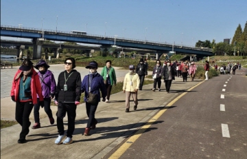만보걷기운동본부(본부장 조현재)가 주관한 가운데 지난 10월 28일 오전 10시, 파주시 금촌동 공릉천 금이동네공원에서 어르신들을 위한 <1,000원 순례길>일환으로 첫 번째 걷기 행사를 개최했다.