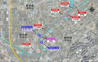 장월평천 일대에는 간이펌프장 2개소와 배수문 2개소가 신설돼 저지대 배수 불량 문제를 해소하고 시가지 및 농경지 90ha 침수피해를 예방한다. 현재 실시설계 중으로 2029년 준공을 목표로 하고 있다.