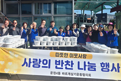 한편, 운정4동 바르게살기운동위원회는 매년 반찬 나눔과 거리 청결 활동 등 다양한 봉사활동을 통해 지역사회 돌봄에 앞장서고 있다.