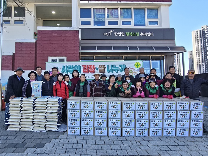 파주시 탄현면 새마을남녀지도자회(회장 윤광용, 임옥연)와 이장협의회(회장 유재근)는 지난 13~14일, 탄현면 종합복지회관에서 ‘사랑의 김장·쌀 나누기’ 행사를 개최했다.