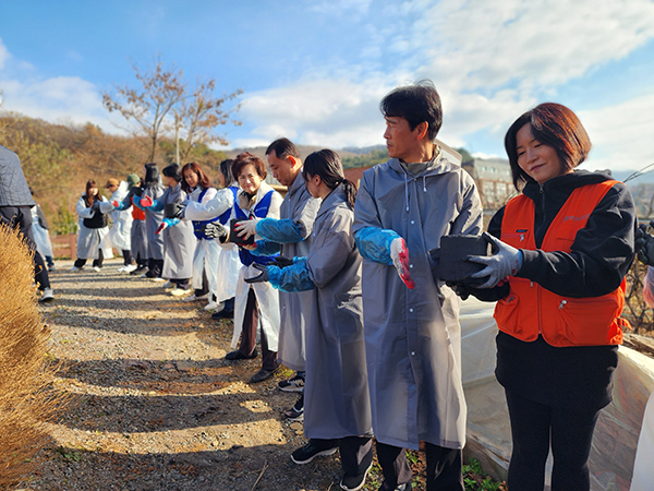또한 기부에 그치지 않고, 봉사자 30명이 법원읍 금곡2리에 거주하는 에너지 취약가정을 찾아 연탄을 직접 배달하며 온정을 전했다. 봉사자들은 주말임에도 불구하고 비탈길과 좁은 골목을 따라 한 장 한 장 연탄을 옮겼다.