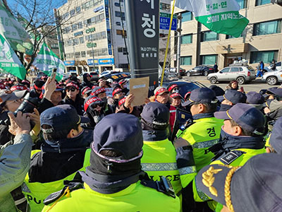 시위대는 질의서를 파주시 측에 공식 전달하려 했으나 아무도 나오지 않자 직접 김경일 시장에게 전달하겠다며 시청 청사로 진입을 시도했다. 이 과정에서 경찰과 시위대 간 몸싸움하며 약 20여 분간 긴장이 고조되기도 했다. 충돌 끝에 정책비서실장이 현장에 나와 질의서를 수령하면서 청사 진입을 둘러싼 소동은 일단락됐다.