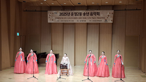 지난 22년부터 매년 개최하고 있는 송년음악회는 운정2동 주민들의 마음을 하나로 모아 뜻 깊은 한해 마무리와 다가오는 새해의 희망을 노래하는 무대로 꾸며지고 있다.