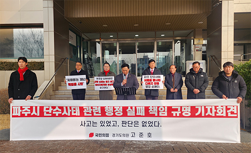 마지막으로 고 의원은 파주시에 ▲행정 과오에 대한 공개 인정 ▲대시민 공식 사명 발표 ▲파주시 차원의 즉각적인 선 보상 방안 마련을 촉구했다. 그는 "행정이 사실로 답하지 않고 눈가리기식 설명으로 시간을 끄는 것은 더 이상 실수가 아니라 실패"라며 "파주시민의 행정 신뢰가 바로 서는 날까지 끝까지 따져 묻겠다"고 강조했다.