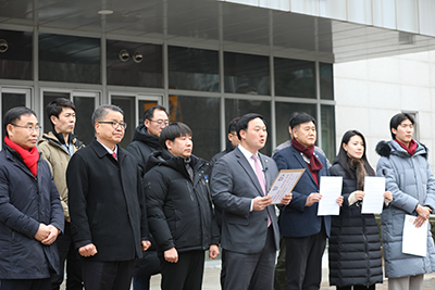 고준호 의원은 이날 파주경찰서 앞에서 발표한 입장문을 통해 “이번 사안은 공무원의 정치적 중립 의무를 정면으로 위반한 중대한 범죄 의혹이자, 공직권력을 동원한 사실상의 정치 테러”라며 “제9회 전국동시지방선거를 앞둔 매우 엄중한 시기에 특정 정당에게 불리한 환경을 조성하려는 선거 개입 시도로 볼 수 있다”고 밝혔다.