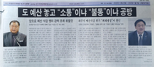 반면 고 의원은 "파주시의 폐쇄 행정이 자초한 결과"라며 맞받아쳤다. 고 의원은 지역 민원 해결을 위한 사업계획 요청을 파주시 실·국장들이 정당이 다르다는 이유로 묵살해 왔다고 폭로했다. 예산 보류는 일을 하지 않는 시청 조직을 움직이게 하려는 고육지책이었다는 논리다. 시장이 예산 확보를 위한 소통 노력은 뒷전인 채, 심의가 끝난 후 언론플레이에만 몰두하고 있다는 비판도 덧붙였다.